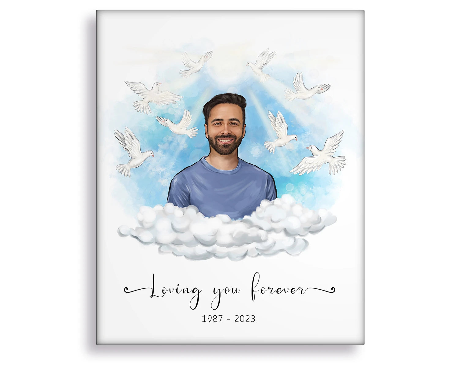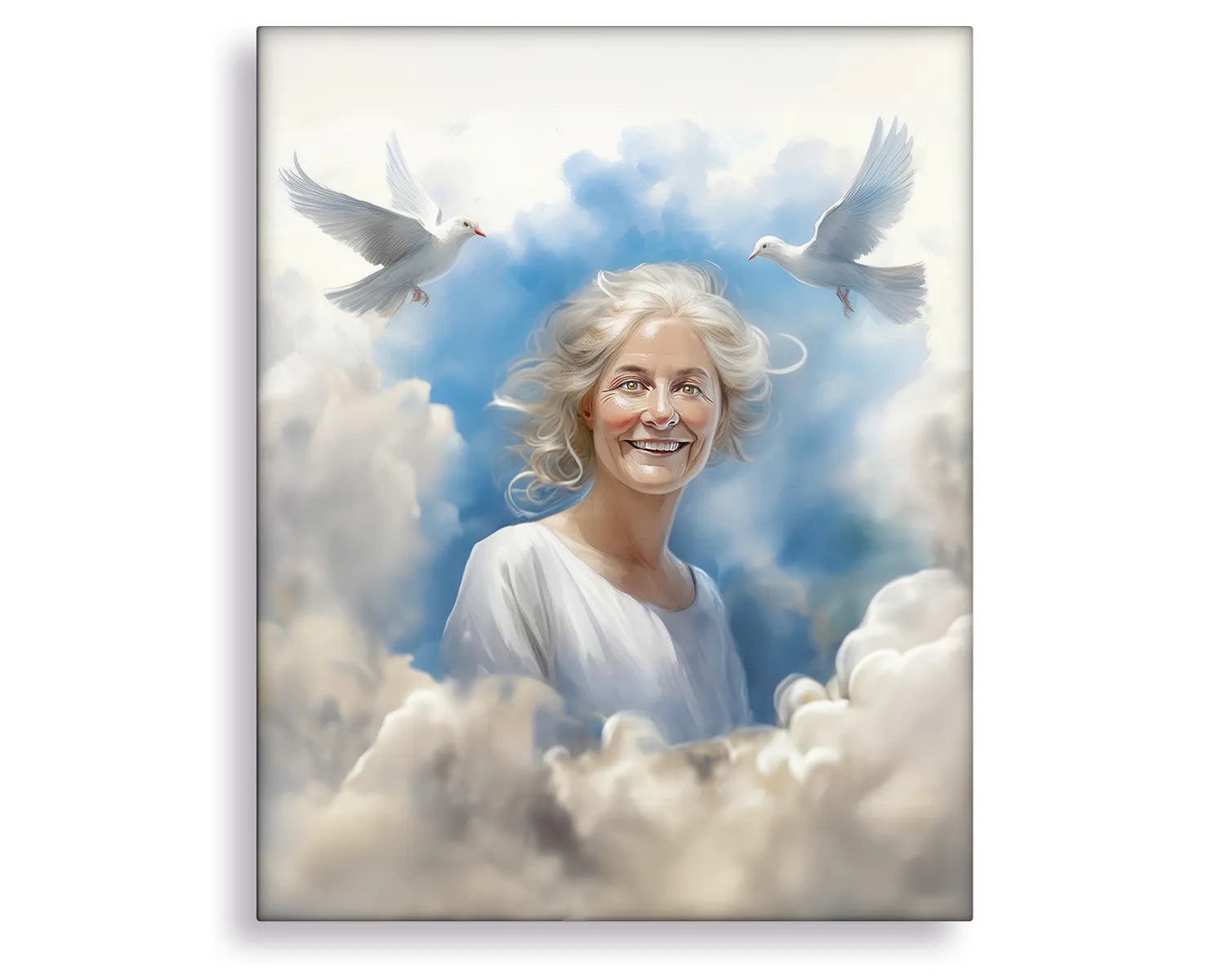 It is a beautiful personalized gift for someone who lost a parent or a loved family member. The spiritual presence of a dead loved one or a person who couldn't be physically present in a photo will bring comfort. Have it printed, put it on a wall, memorial stone, or album.
