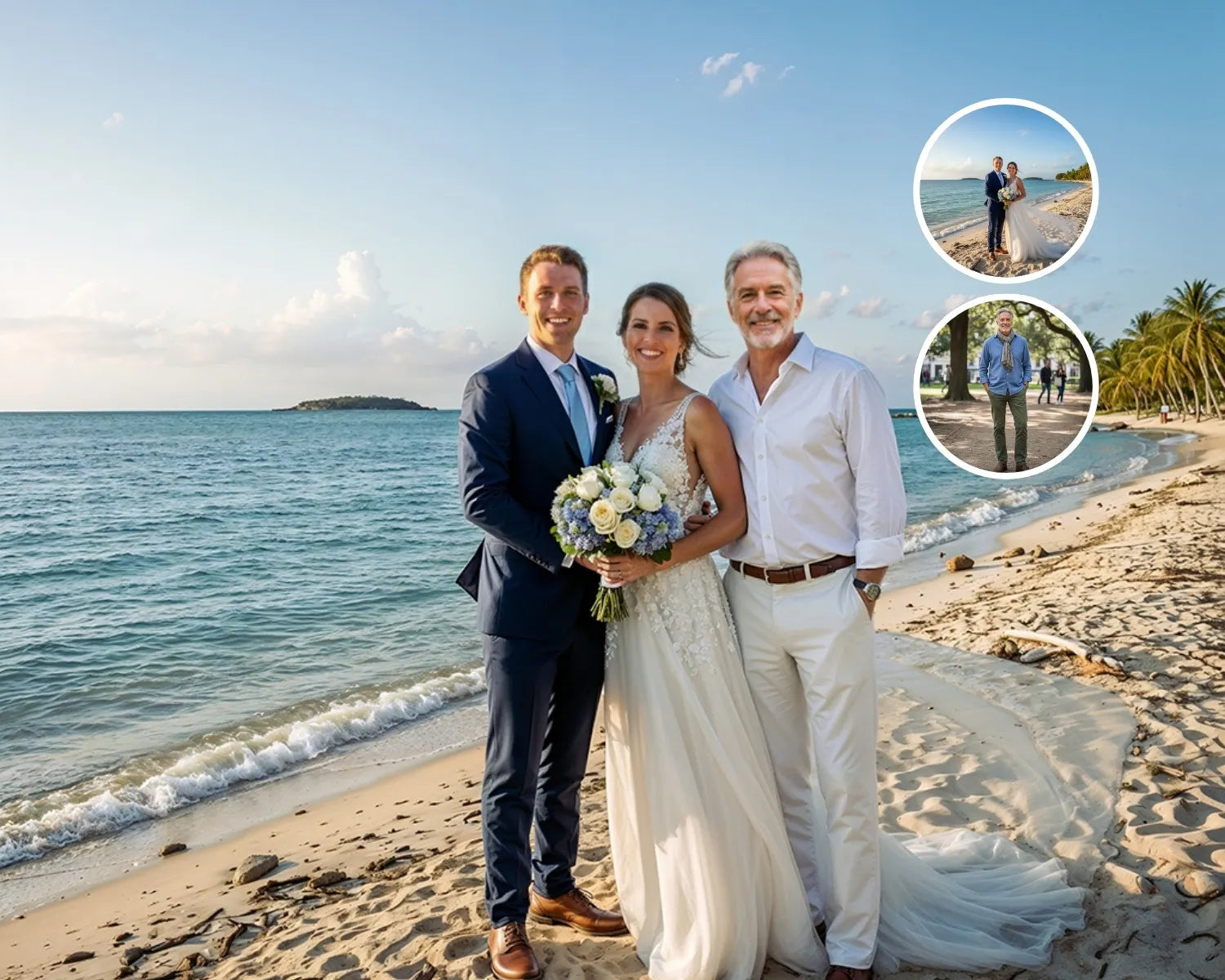 With over 15 years of in-depth experience in creating meaningful keepsakes, our skilled team from the US can merge one or multiple photos into a portrait. We will naturally add a person to your photo, honoring their presence in a way that supports remembrance, eases grief, and brings comfort. We use a fully manual, layer-by-layer process to match lighting and shadows, ensuring your loved one looks naturally placed while preserving the emotional depth and dignity of their presence.