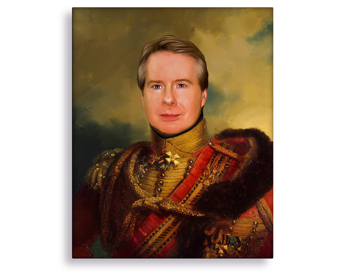 Have your loved one wear The Colonel costume and become part of history with a Personalized Historical Portrait done from your photo. His Unique Personal Traits can be highlighted with a Royal Renaissance or a Medieval man costume of your choice. This is the best personalized gift you can make to your boyfriend, husband, father, grandfather, brother or uncle. Have the portrait delivered digitally or to your door as a canvas print or framed poster.