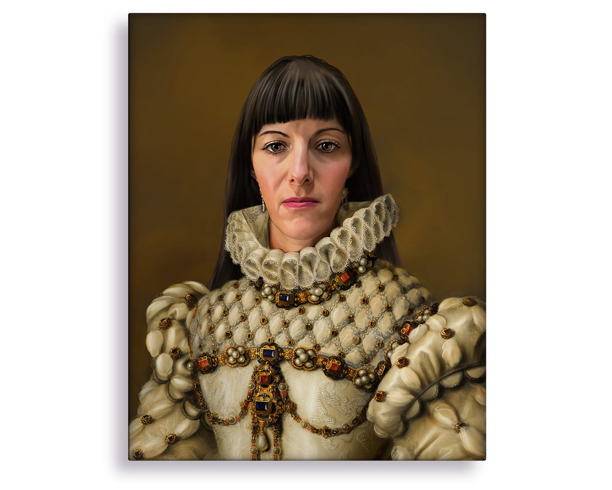 Have your loved one wear The Duchess costume and become part of history with a Personalized Historical Portrait done from your photo. Her Unique Personal Traits can be highlighted with a Royal Renaissance or a Medieval woman costume of your choice. This is the best personalized gift you can make to your girlfriend, wife, mother, grandmother, sister or aunt. Have the portrait delivered digitally or to your door as a canvas print or framed poster.