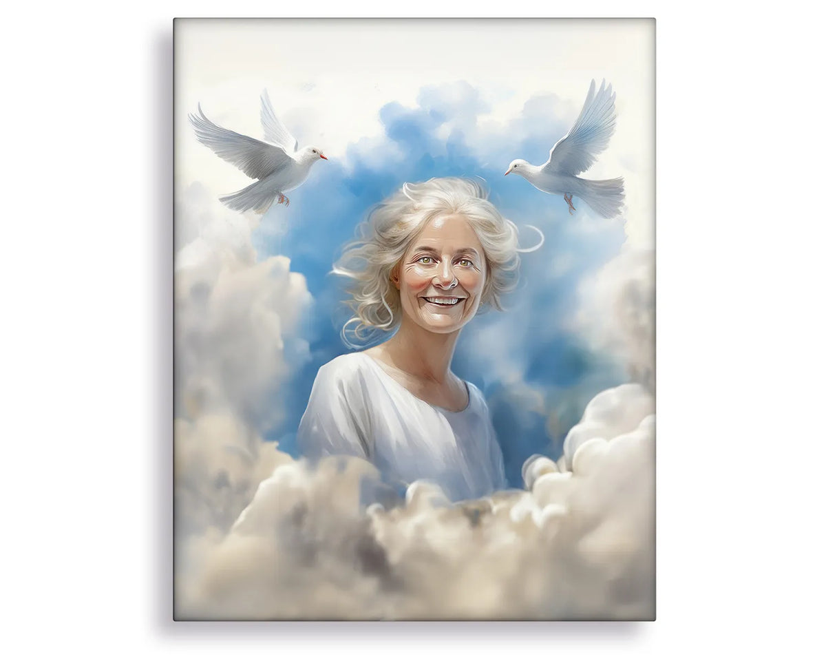 A memorial canvas is a custom-made digital painting created from your reference photos, then printed on a 100% cotton fiber canvas. It serves as a home decor piece and a statement of love for departed loved ones.